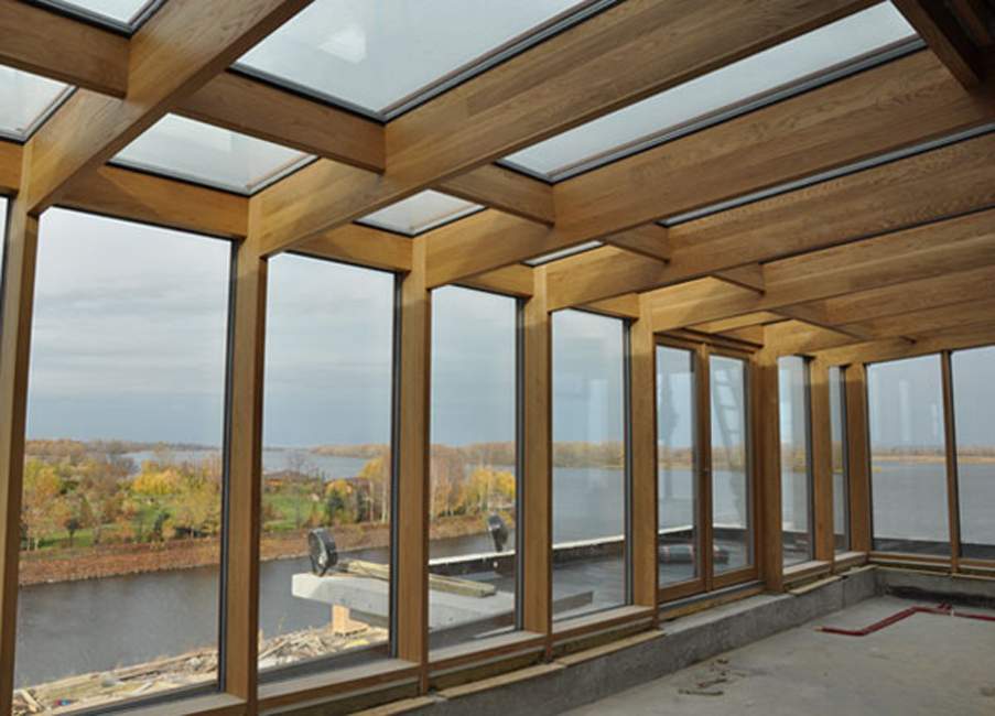 Дерево - «теплий матеріал, приємний на вигляд і на дотик. При цьому дерево – легкий матеріал, що дозволяє виконувати з нього витончені й одночасно міцні конструкції. Використання клеєної деревини, в якій брус складається з 4, 5 або більше ламелей дозволяє забезпечити конструктивні властивості, порівнянні зі сталлю або алюмінієм. Ламелі склеюються під тиском спеціального преса екологічно чистим клеєм, які мають столітню гарантію і європейські «зелені» сертифікати. Склеювання проводиться таким чином, щоб волокна ламелей були разнонаправленны відносно один одного. Це дозволяє повністю уникнути викривлення конструкцій під дією температури і вологи. Для конструкцій зимових садів і оранжерей використовується деревина технічної вологості (12%), профільована на автоматичному обладнанні з комп'ютерної точністю.