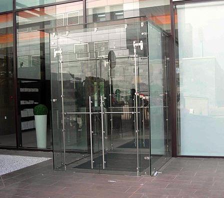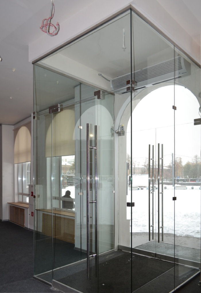 Подібні конструкції володіють такими перевагами, як зовнішня привабливість, наочно демонструючи статус організації, що займають приміщення, а також є міцними і надійними, оскільки виконані із загартованого скла і призначені, як правило, для установки в кілька рядів, утворюючи, так звані, тамбури, зберігають тепло в будинках з великою пропускною здатністю. Компанія «Архітектурні Конструкції» пропонує встановлення скляних тамбурів, виконаних з прозорого, матового, а також тонованого скла. Також, за запитом замовника, на поверхню можуть бути нанесені різні написи, такі як назва компанії або її логотип.